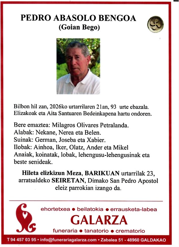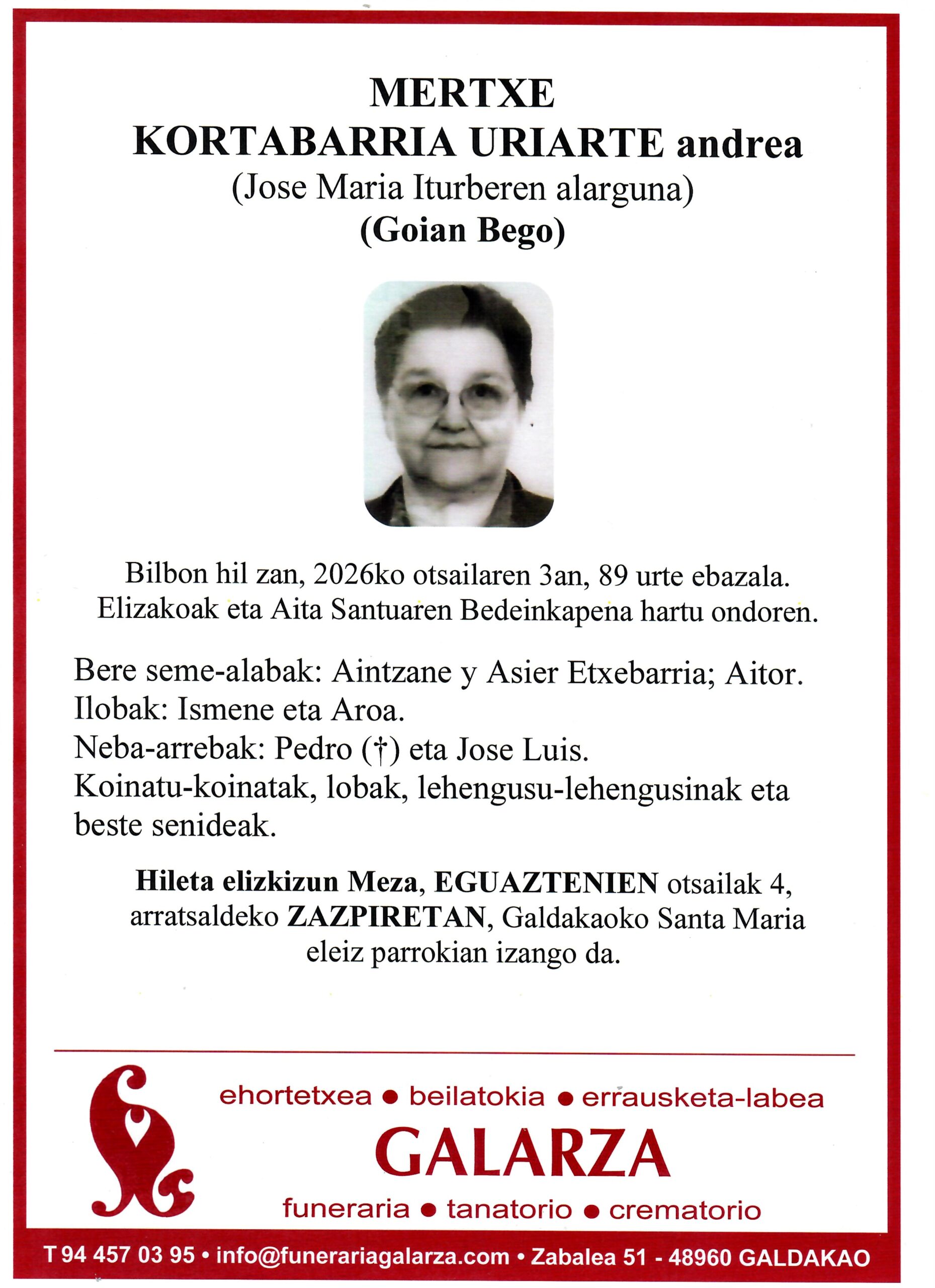 Funeraría Galarza es una empresa que, con más de 100 años de experiencia, se ha convertido en un referente del sector de Servicios Funerarios en Bizkaia.